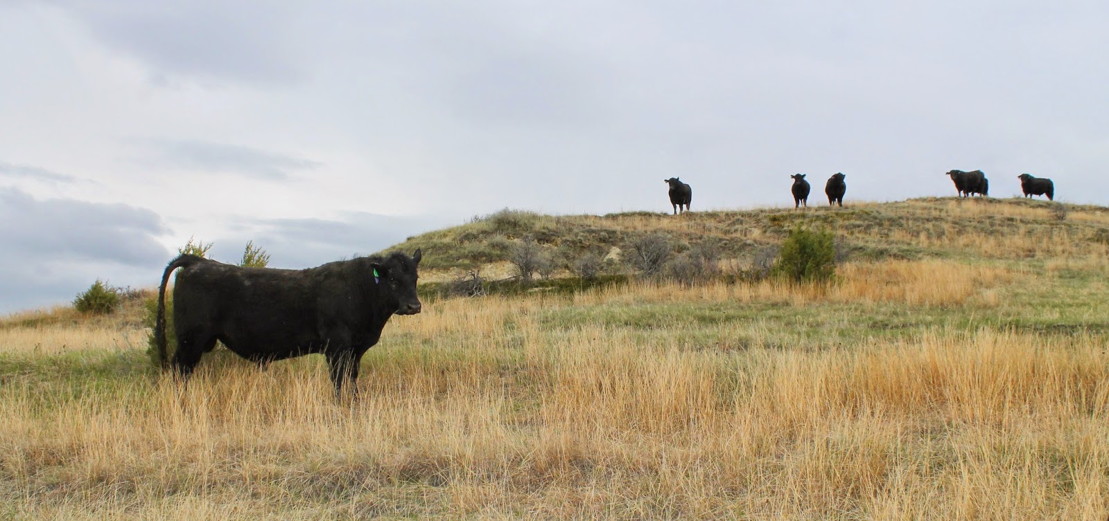 Yes, they can be dangerous! Bulls or in as on our ranch Black Angus bulls. These are some of our bulls. This bunch ranges in age from one year to three years old. They weigh between 1300-2100 pounds. Currently they are about a month and a half away from being turned out with the cows. They will spend about 45 days or so getting the cows bred. Then they go back to just hanging out in the bull pasture.